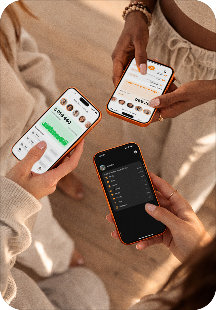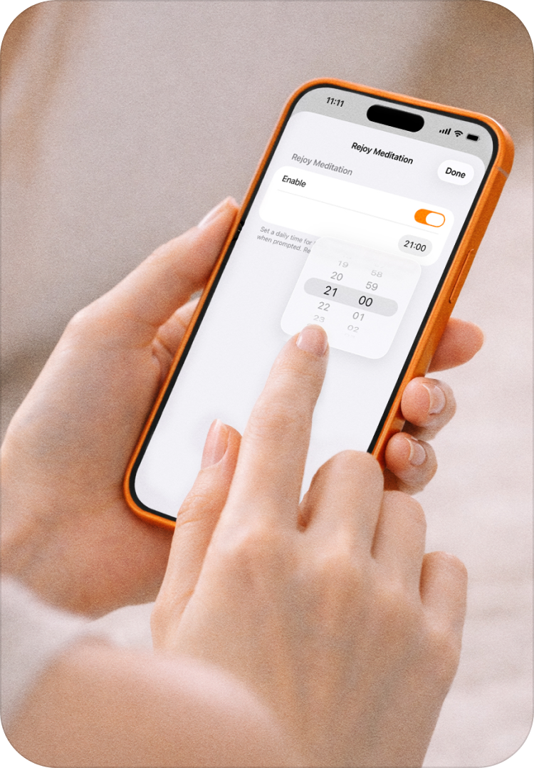 Tap the button and choose your activity — meditation, yoga, work, or family.
