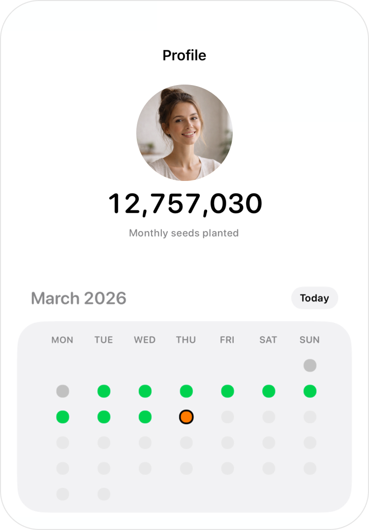 Track your activities, activate your seeds, and share your progress.